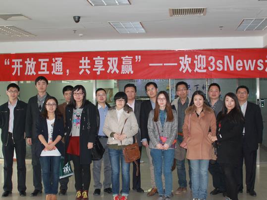 2014年3月17日下午,3sNews的采編團(tuán)隊(duì)在總裁劉玉璋帶隊(duì)下,來到中科宇圖天下科技有限公司參觀學(xué)習(xí),受到了中科宇圖副總裁/中科宇圖資源環(huán)境科學(xué)研究院院長劉銳等公司領(lǐng)導(dǎo)的熱情接待。